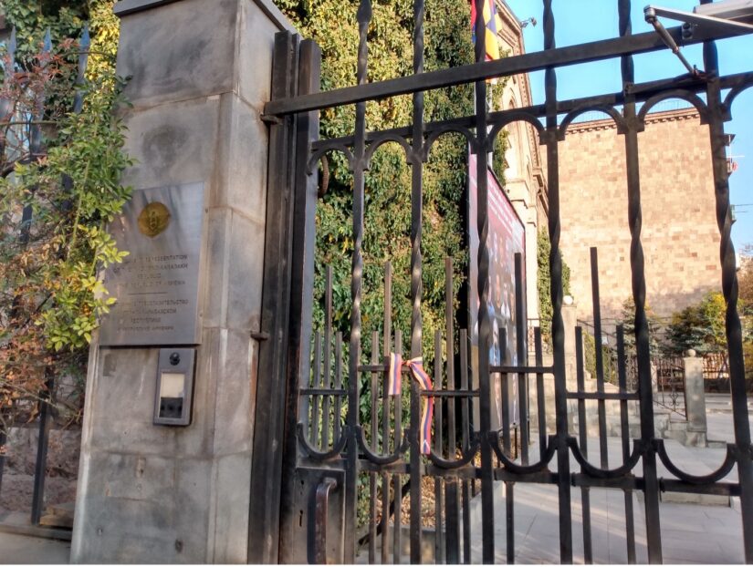 Image: The gate leading to the Representative Office of Nagorno-Karabakh Republic in Yerevan, post mortem (Source: Eiki Berg)