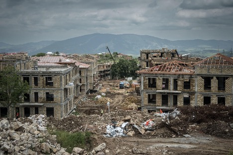 Image: Almost immediately after regaining control over the Nagorno-Karabakh conflict zone, Azerbaijani authorities launched a massive reconstruction effort, removing prominent buildings of the former de facto authorities along with many Armenian residential homes. (Source: Sergey Ponomarev/The New York Times, Shusha/i, 2023)