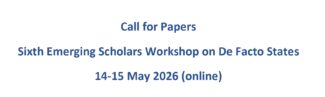 The De Facto States Research Unit is happy to announce that its Sixth Emerging Scholars Workshop on De Facto States will be taking place online on 14-15 May 2026. The event is open to those working on de facto states, state recognition, secession, and related topics from the fields of political science, international relations, history, sociology, and neighbouring disciplines. The workshop will serve as a platform for introducing ongoing research projects, receiving feedback from peers, and establishing a network of emerging scholars working on the above-mentioned topics. We will discuss research projects in various stages in development, such as theses, whether in their initial stage or close to completion, book chapters or articles in progress, etc. Read the full call here.